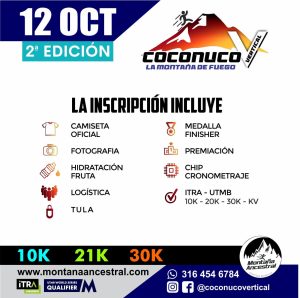De alto nivel competitivo, exige un gran esfuerzo físico. Para poder inscribirse, los participantes deberán cumplir con un filtro que certifique experiencia previa en carreras de más de 15K y 25k . Además, los corredores de la distancia 30K deberán presentar su material obligatorio durante la entrega de kits para su revisión y aprobación por parte de la organización. Habrá premiación en efectivo para la categoría general, así como reconocimiento en el pódium y obsequios de la organización para las categorías máster.